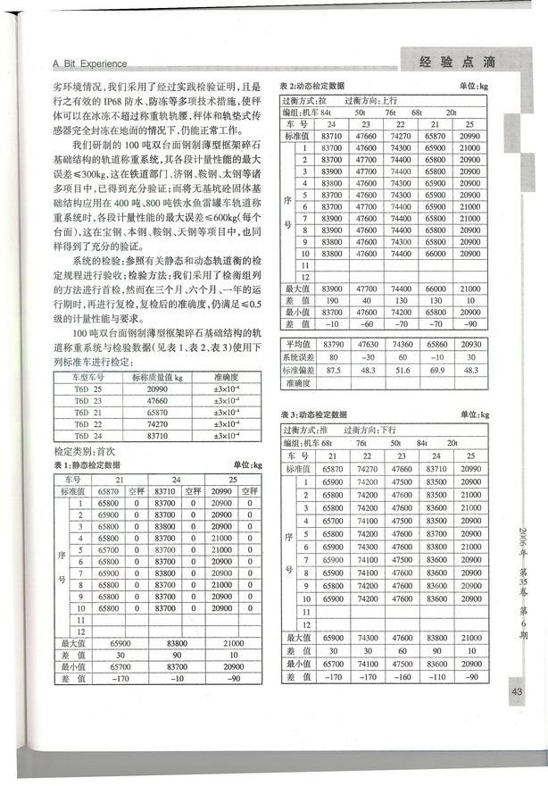 本文简捷地介绍了我们应用多项自主专利和发明专利技术成功研制的100吨无基坑不断轨复合式轨道称重系统,其较好地解决了矿山采矿装车计量问题过程中的一些经验与体会,与同行交流。
