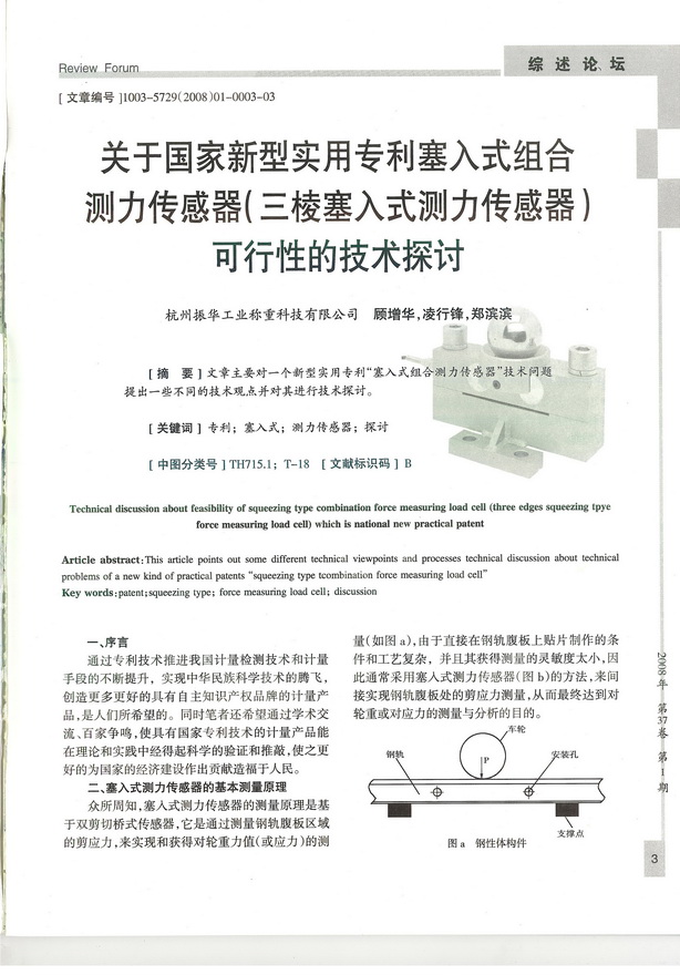 文章主要对一个新型实用专利“塞入式组合测力传感器”技术问题提出一些不同的技术观点并对其进行技术探讨